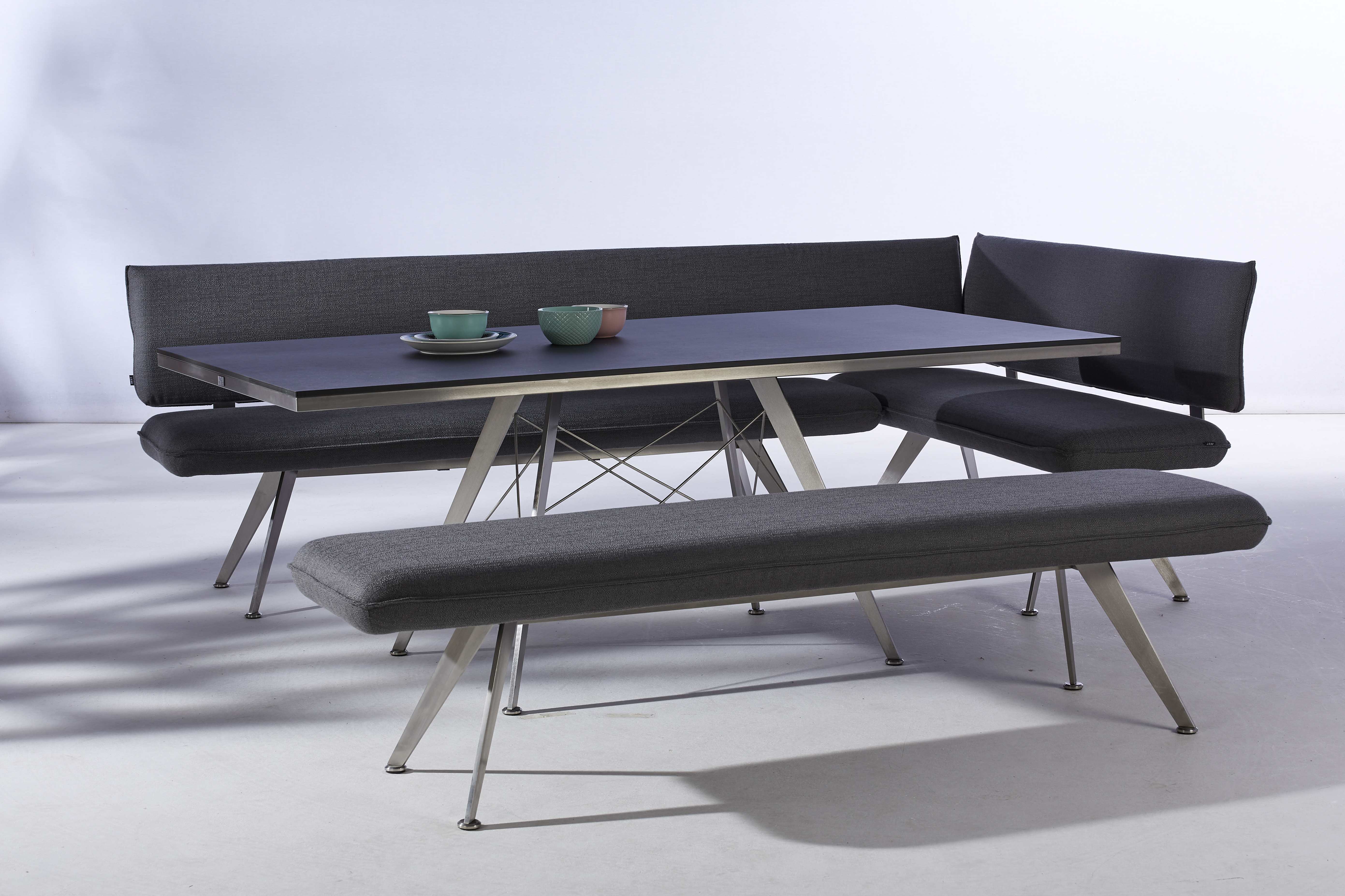 Im Preis inbegriffen: Sitzbank mit Rückenlehne 150 cm, Edelstahlgestell mit dem Stoff Marengo