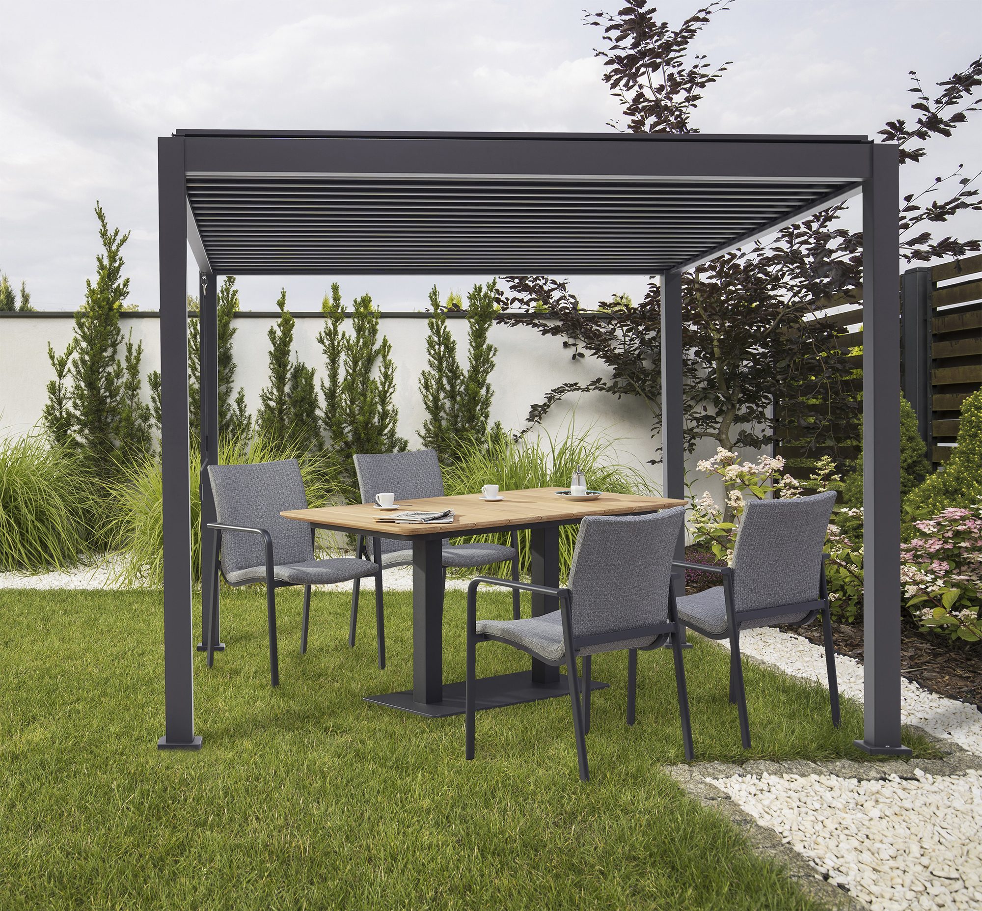 Die elegante Terrassenüberdachung lässt sich mit einer Handkurbel einfach verstellen. Sie spendet Ihnen an heissen Sommertagen den nötigen Schatten und lässt Sie nicht im Regen stehen. 300 x 400 x 250 cm