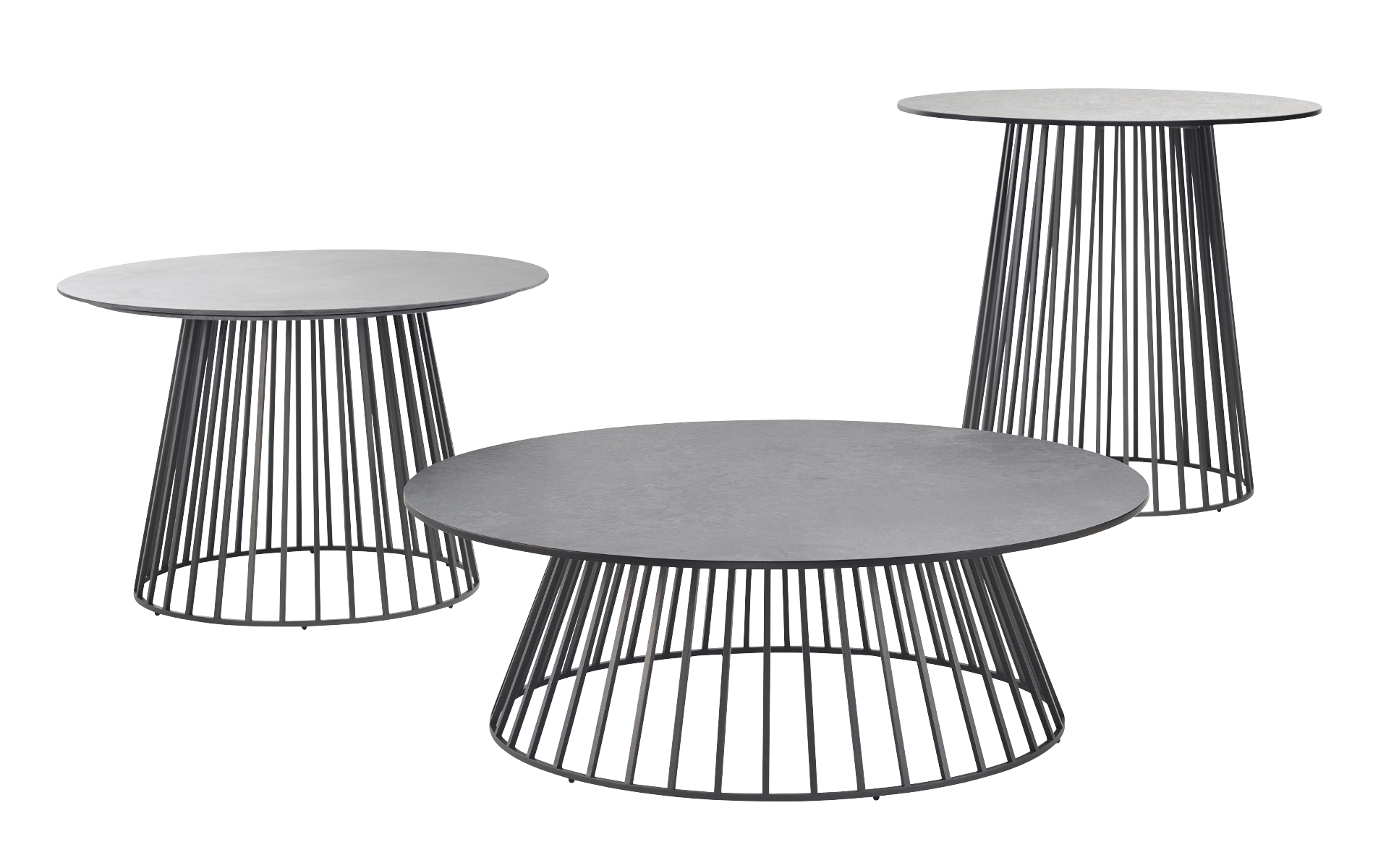 Gabrid ist eine Kollektion runder Beistelltische in trendigem Industrial Design in drei verschiedenen Höhen und drei unterschiedlichen Größen. Die Tischplatten – wahlweise aus HPL oder durchgehendem Teakholz – werden getragen von einem filigranen, transparenten Untergestell aus Aluminium. Ob als Beistell-, Lounge- oder Bistrotisch ergänzt Gabrid ein jedes Outdoor-Arrangement.