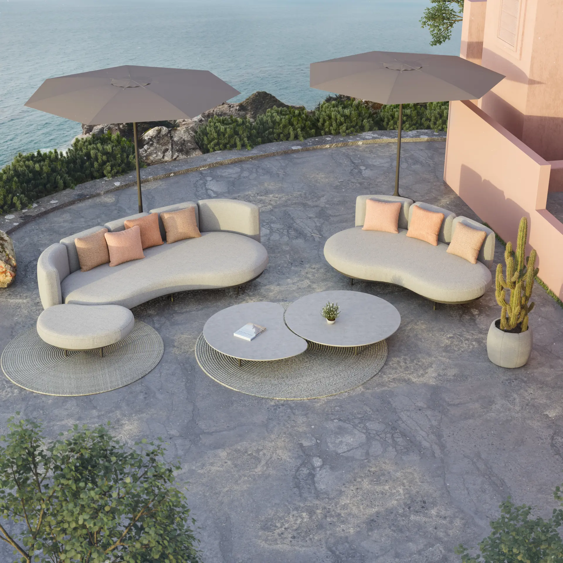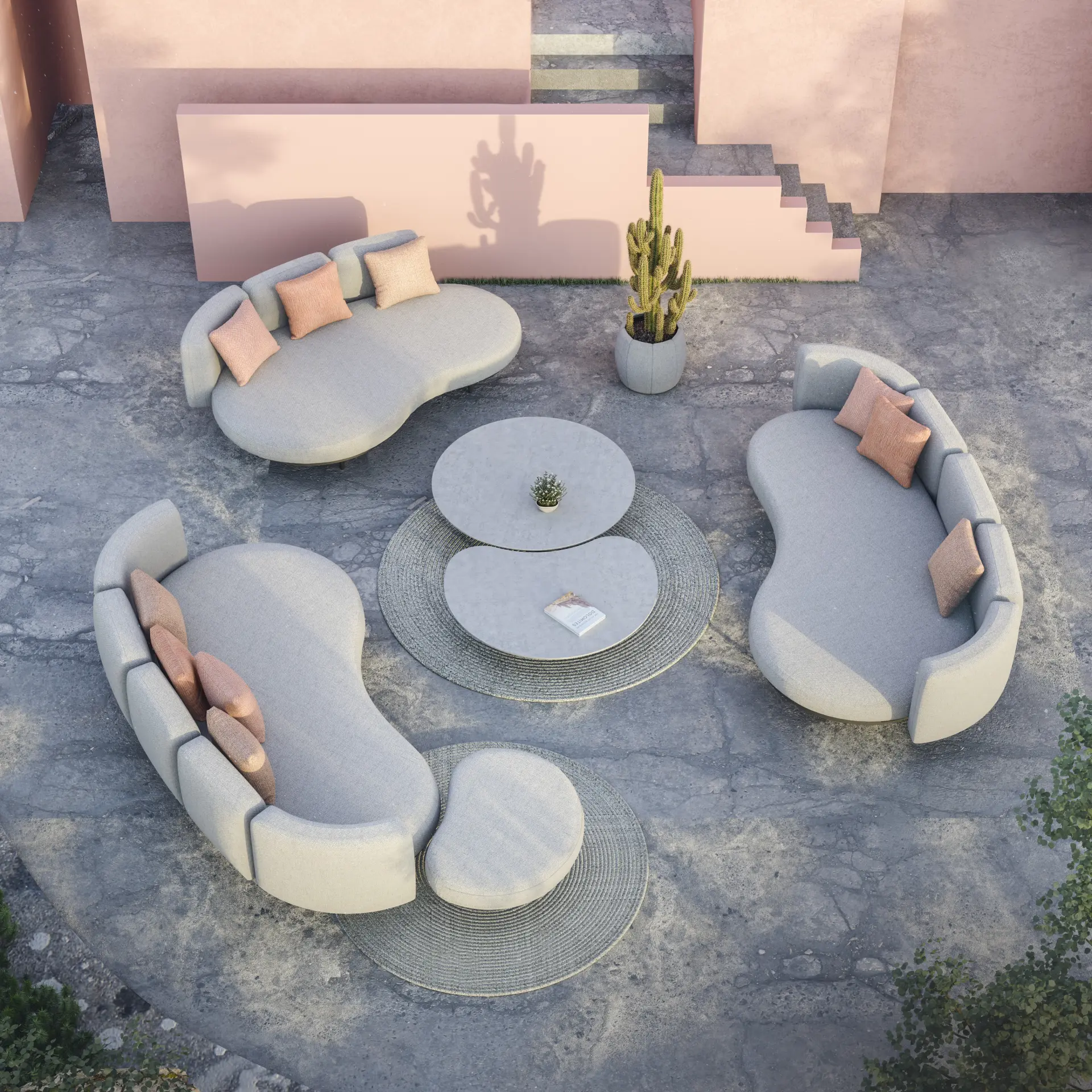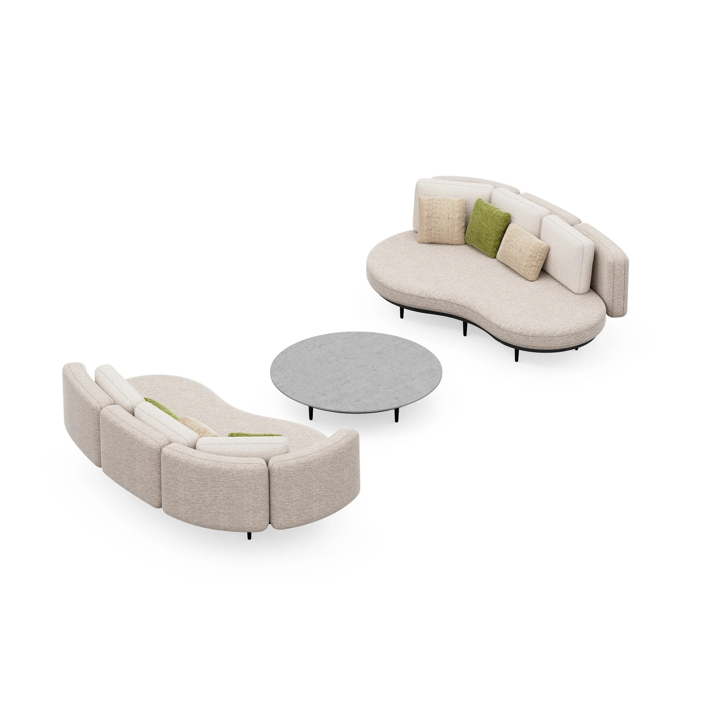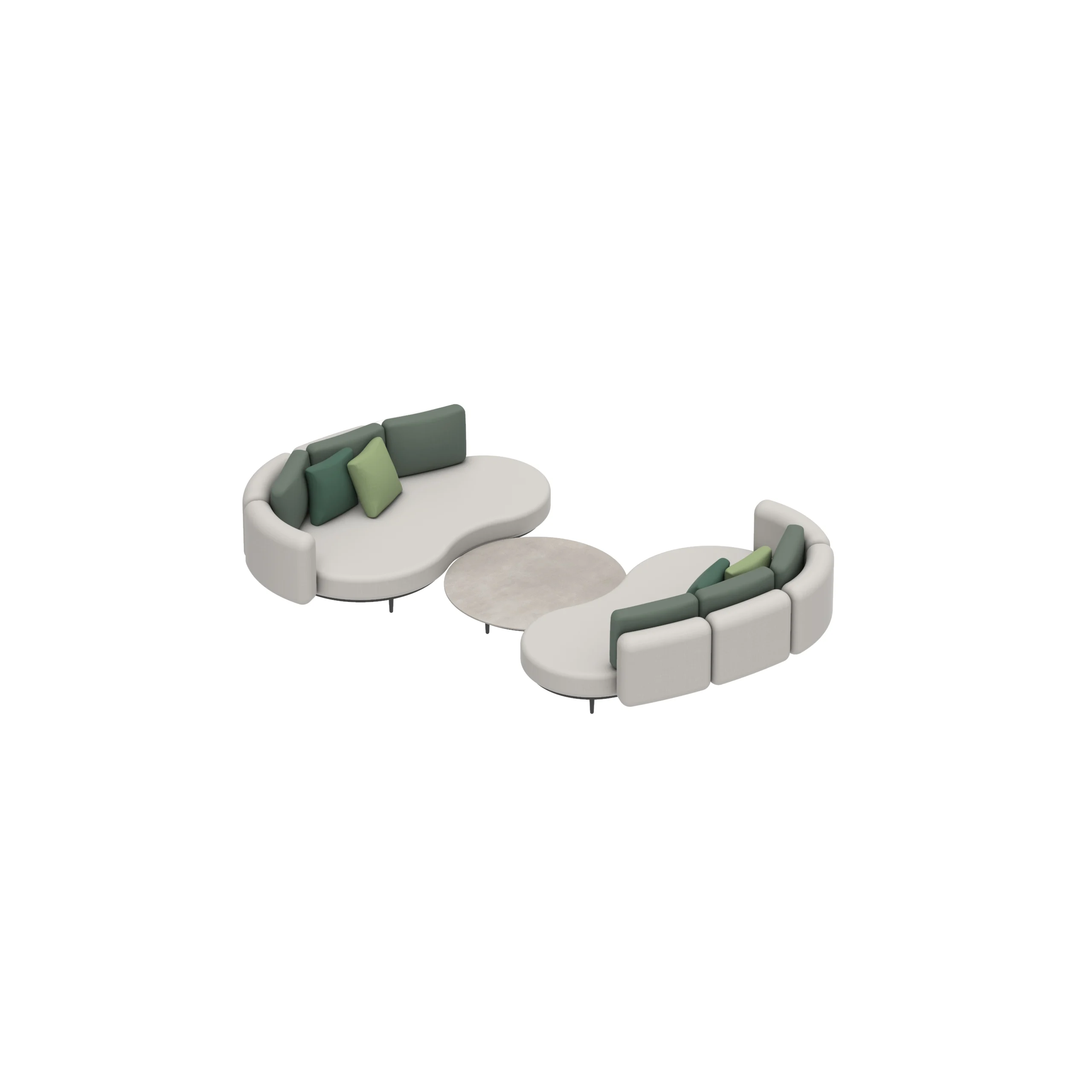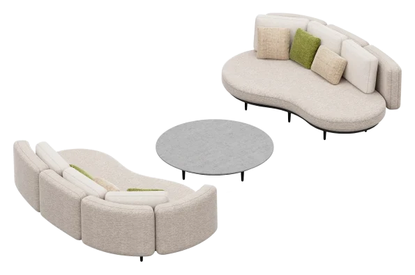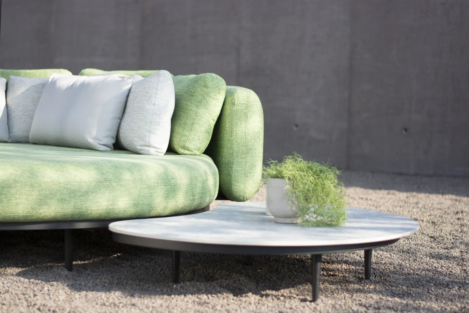 Passend zu den nierenförmigen Elementen sind die Rückenkissen in drei verschiedenen Rundungen erhältlich und lassen sich nach Belieben unkompliziert und stabil an den Grundelementen aus Aluminium verankern. Diese Modulierbarkeit und die Auswahl an unterschiedlich dimensionierten Lounge-Elementen ermöglicht es Ihnen, Ihre Lounge Organix mühelos an die vorhandenen Platzverhältnisse anzupassen und bei Bedarf zu einem späteren Zeitpunkt weitere Elemente dazu zu kaufen, um mit diesen Ihre Gartenlounge Organix umzubauen oder zu erweitern.