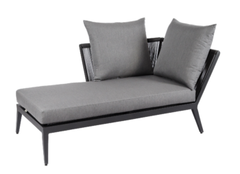 Würde man die Lounge DENIA von Weishäupl einem Tier zuordnen, wäre sie ein Chamäleon – denn sie verschmilzt regelrecht mit ihrer Umgebung. Das Gestell wird aus Aluminium und Teakholz gefertigt und mit hochwertigen Textilkordeln bespannt.