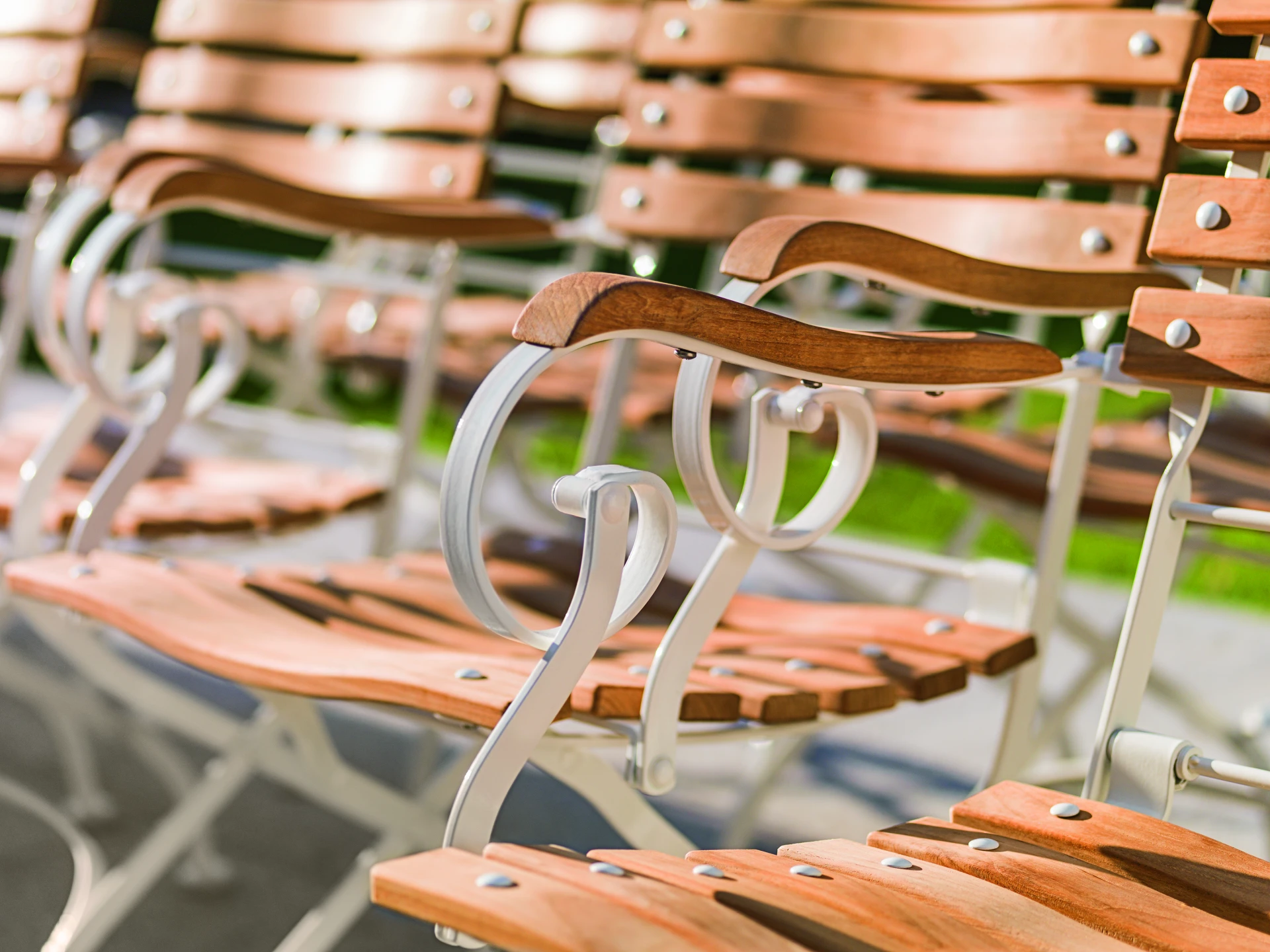 • Sitz- & Rückenfläche aus geschwungenen, massiven Teakholz-Latten