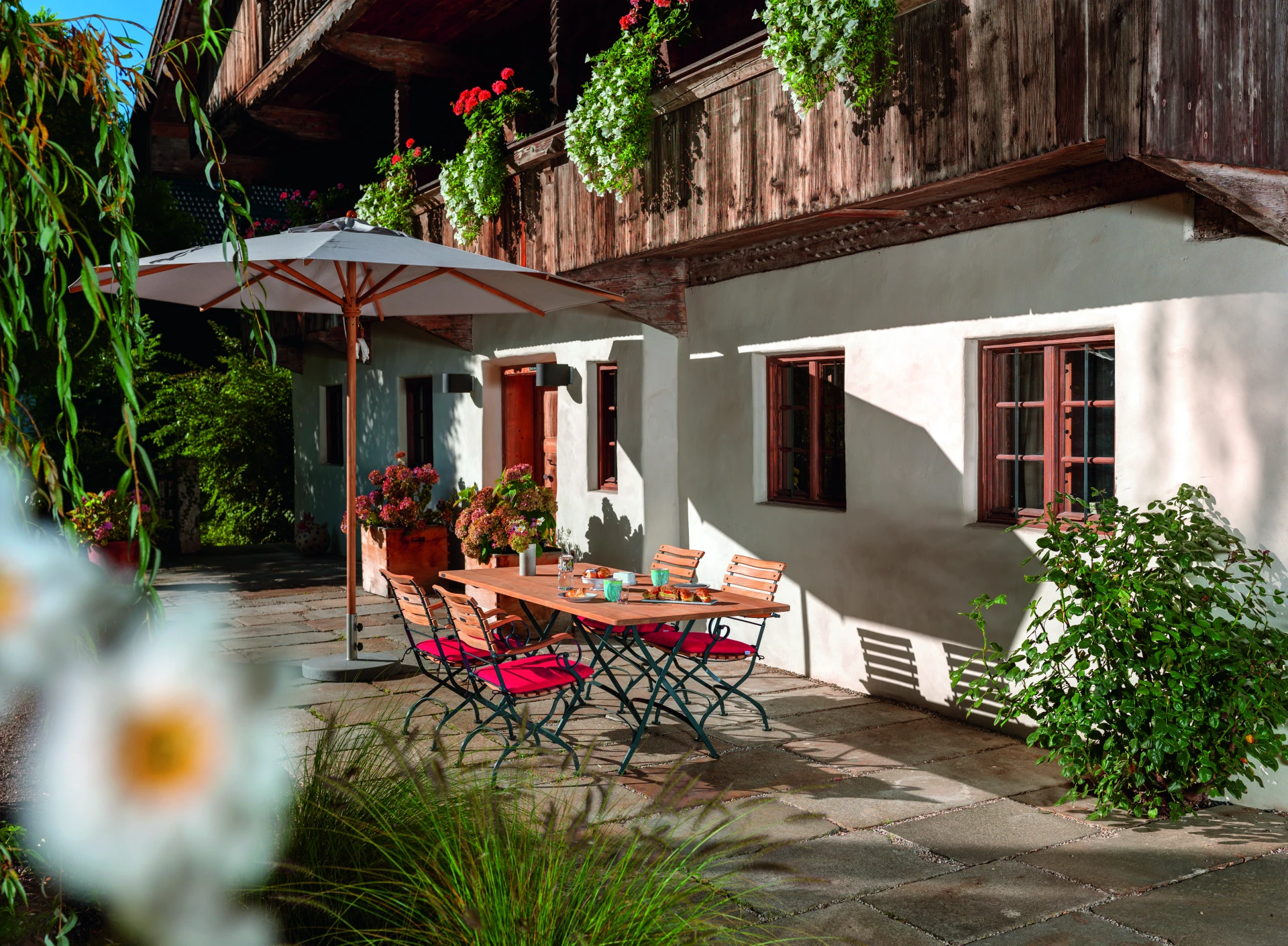 Südfrankreich ist mehr als ein Lebensgefühl. Nicht umsonst war es Sehnsuchtsland der Impressionisten. Cannes, Mougins, Antibes, Cap Ferrat – allein die Namen klingen nach Verheissung. Genau wie die Kollektion Classic von Weishäupl, welches schon seit vielen Jahren zu unseren Bestsellern gehört. Die hochwertigen Werkstoffe die in dieser Serie verbaut werden hat der Hersteller im Laufe der Zeit stetig weiterentwickelt. Die Gestelle werden aus verzinktem, pulverbeschichtetem Stahl gefertigt und die massiven Teakholz-Latten mit absolut wetterfestem Edelstahl verschraubt. Für dieses hochwertiges Gartenmöbel-Programm offeriert Weishäupl zudem passgenaue Polster, welche mit Stoffen in unterschiedlichen Farben und Stoffqualitäten individualisiert werden können.