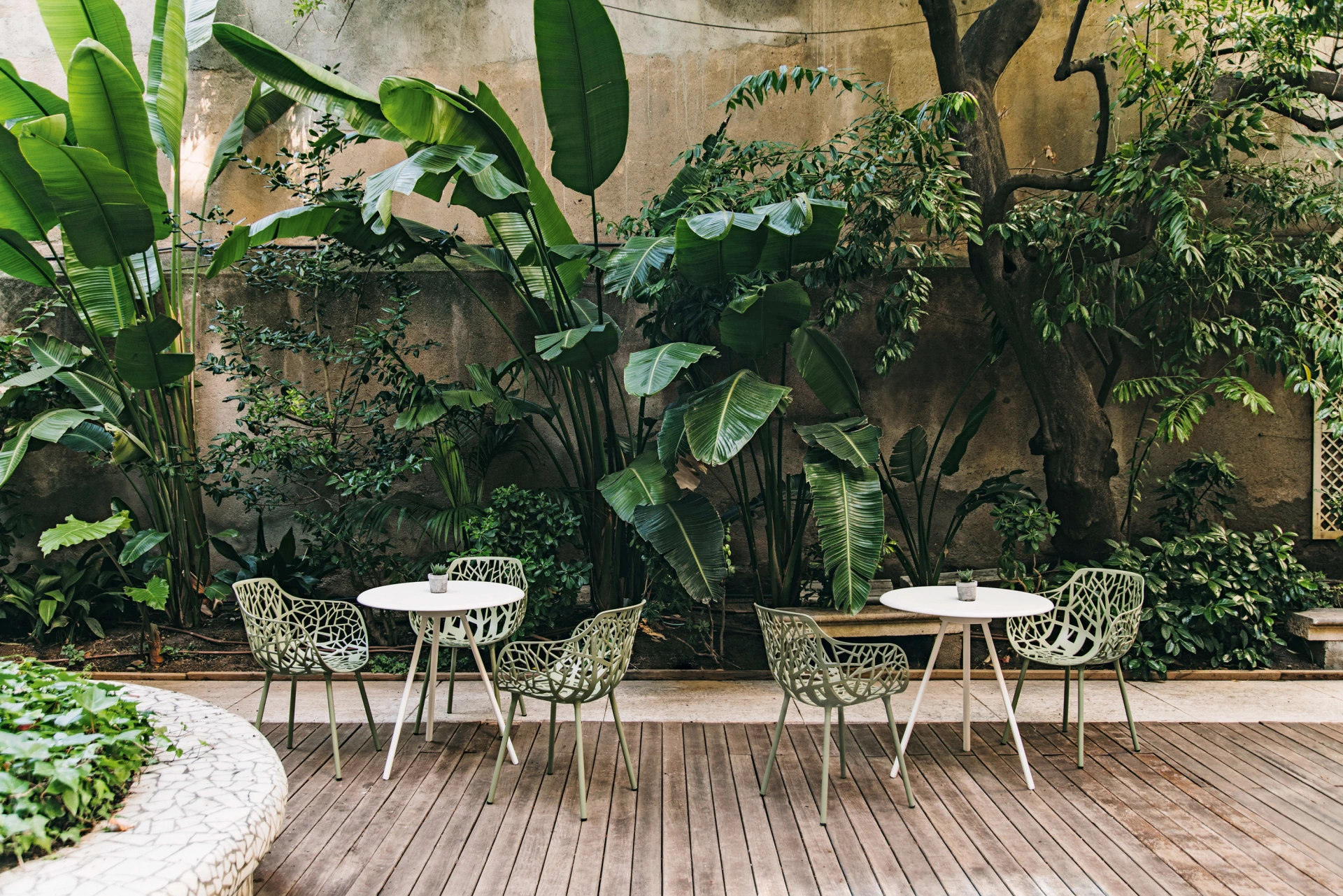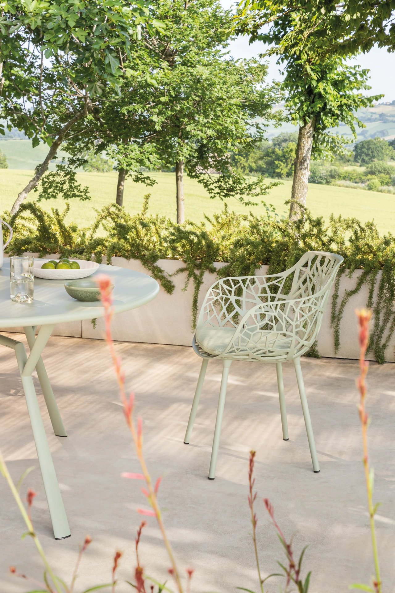 Die charakteristische Form der Beine des Gartentisch Forest von Fast Spa, der auch unter dem Namen Radice Quadra bekannt ist, wurde vom mathematischen Zeichen der Quadratwurzel inspiriert. Die Verwendung von Aluminiumdruckguss für das Gestell macht dieses leicht, robust und durch die fliessende Form zu einem optischen Highlight dieser Serie. Die druckgegossene, stranggepresste, laminierte Tischplatte aus Aluminium kann direkt online als rechteckiger Esstisch und auf Anfage auch quadratisch, rund und mit einer Oberfläche aus gesprenkeltem Aluminium bestellt werden.