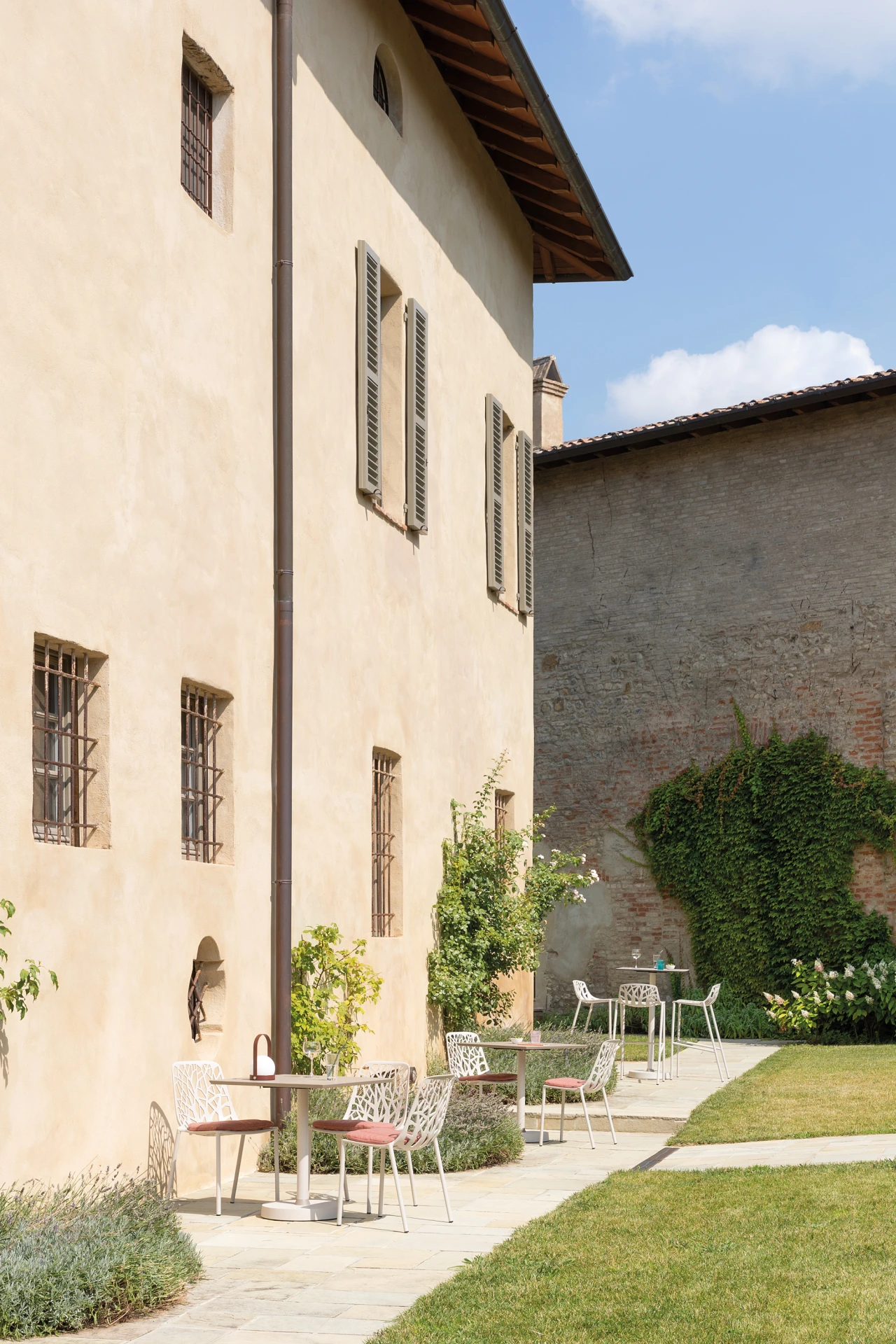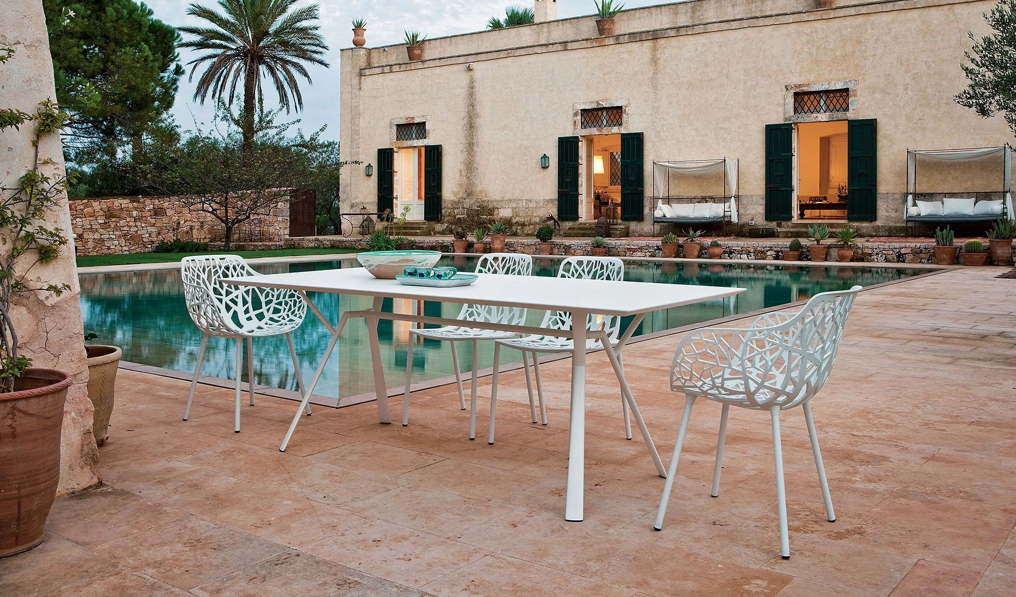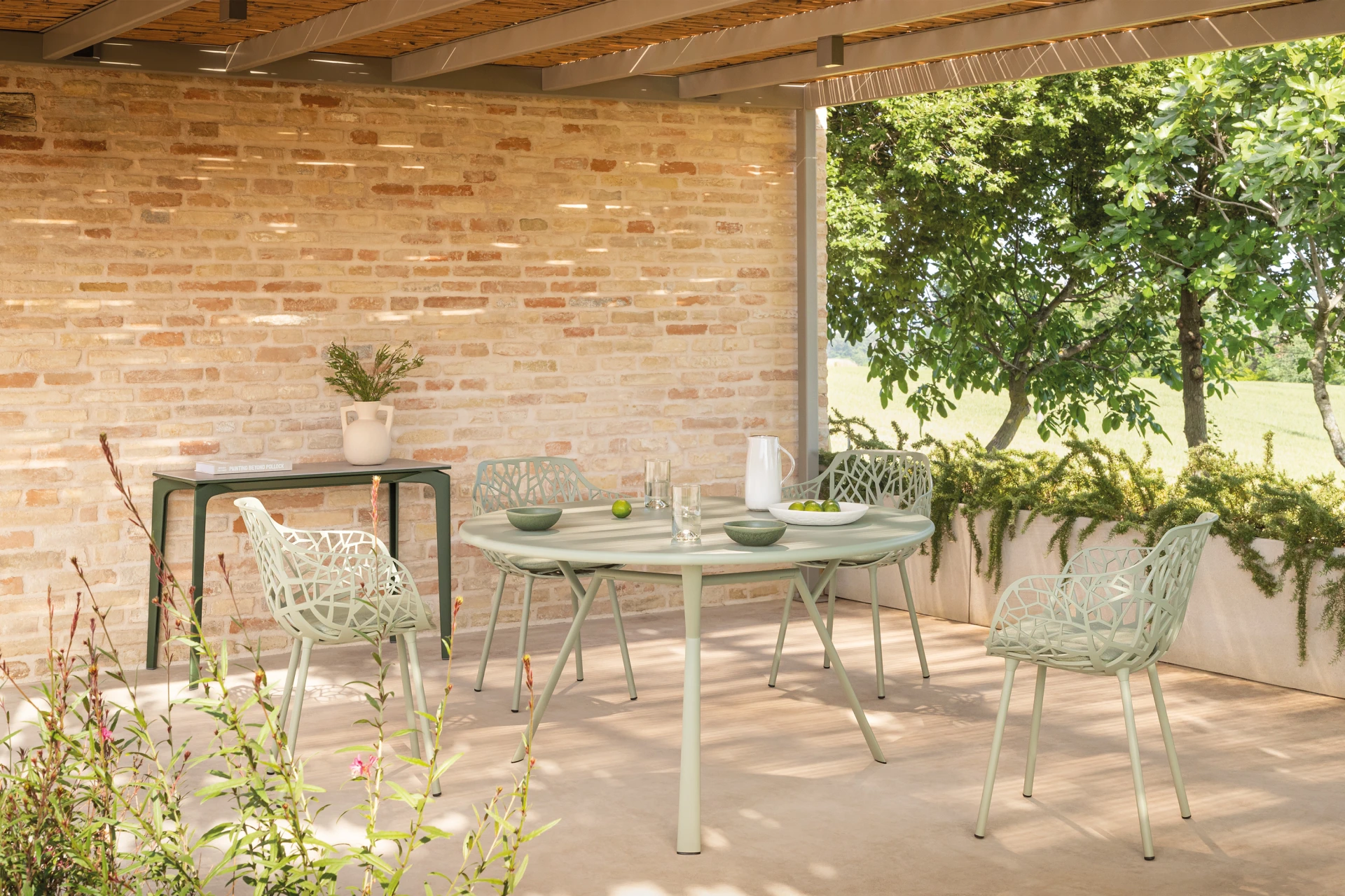 Der Gartentisch Forest lässt sich harmonisch mit sämtlichen Essstühlen von Fast Spa kombinieren, wobei eine besonders ansprechende Ästhetik entsteht, wenn sie mit den markanten Designs der Sitzmöbel der Kollektion Forest kontrastiert werden, welche in den gleichen Farben wie dieser Tisch erhältlich sind. Das Programm Forest umfasst Stühle, Sessel, Barstühle sowie einen Schaukelsessel, einen Loungesessel und einen Esstisch. Made in Italy.