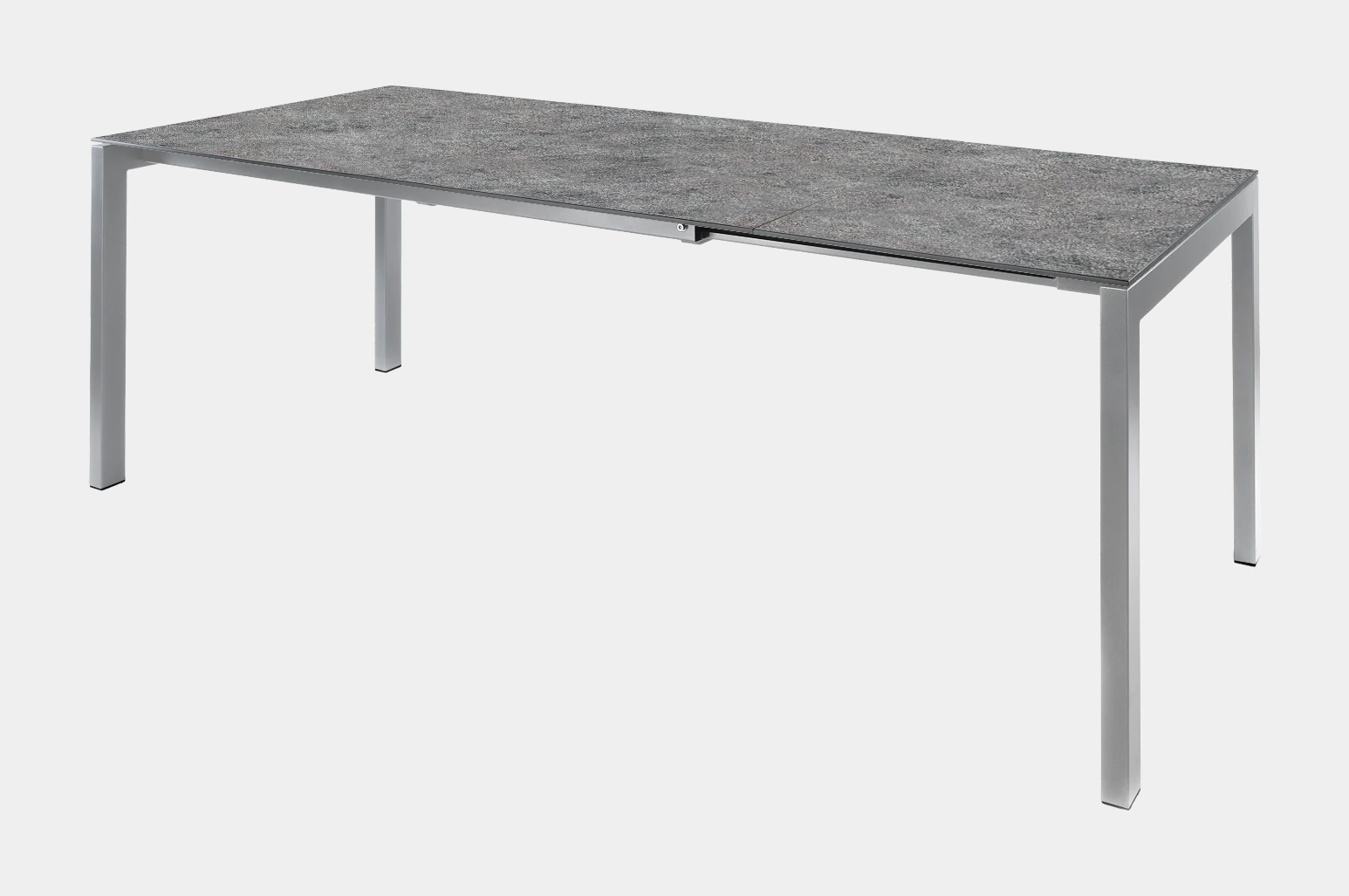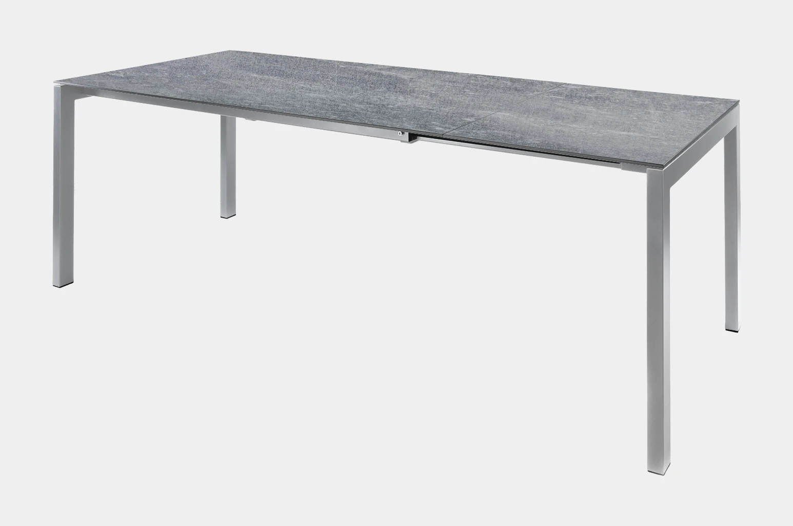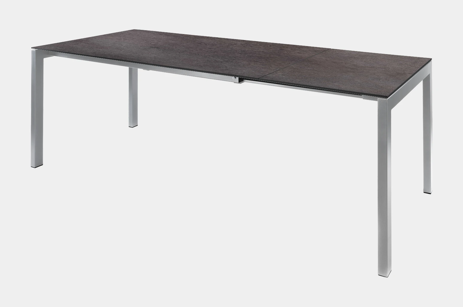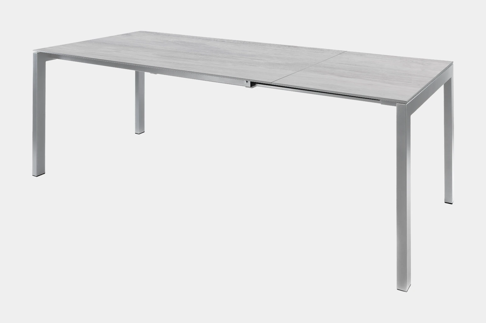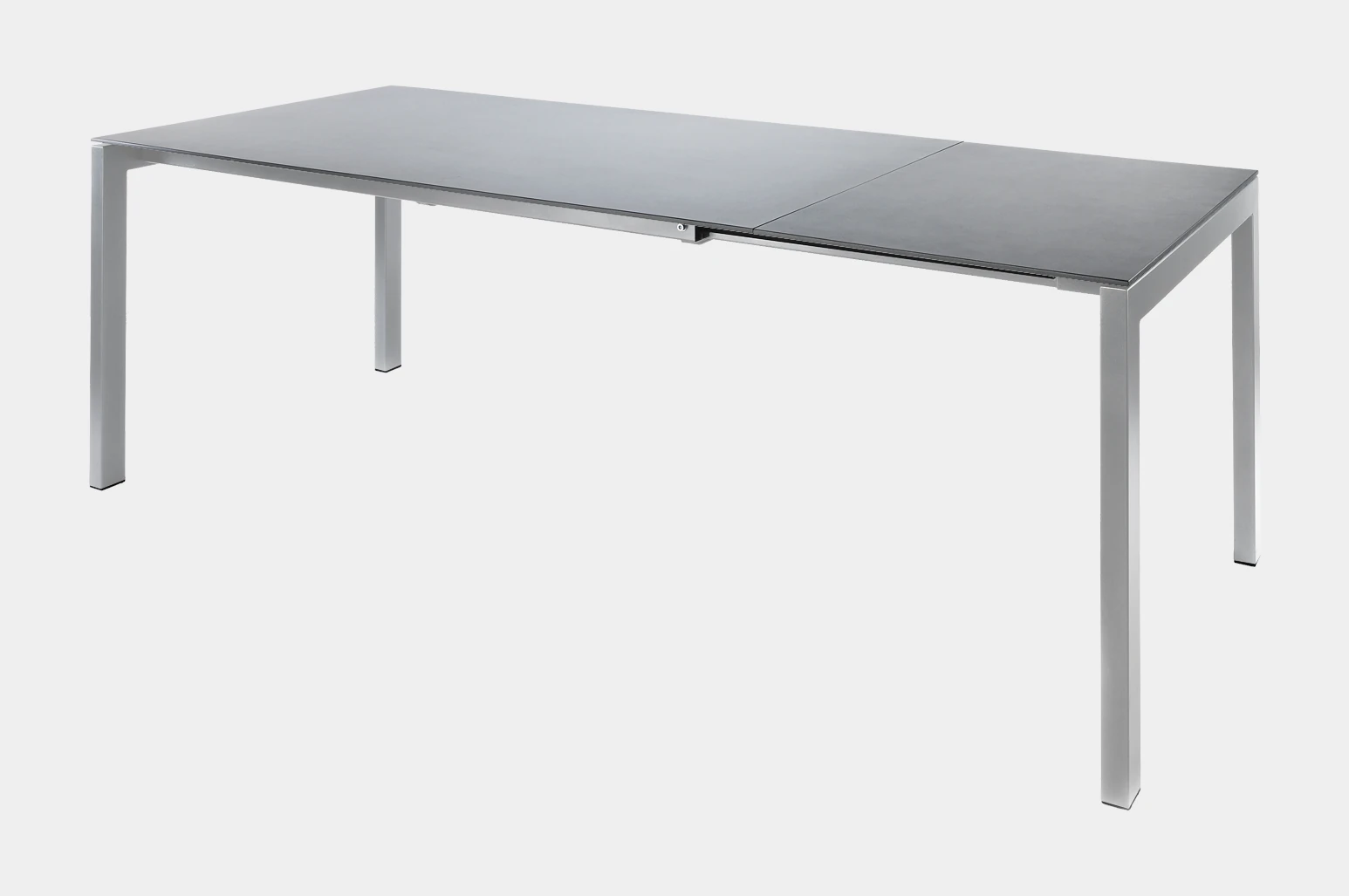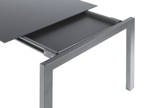 Der Fiberglastisch Luzern von Schaffner verfügt über ein elegantes Untergestell, welches wahlweise in Stahlrohr oder Edelstahl erhältlich ist. Die Variante in Stahlrohr wird in einem aufwändigen Verfahren zuerst galvanisch verzinkt, dann sandgestrahlt und schliesslich mit einer reinen Polyesterpulver-Beschichtung versehen, welche das Gestell korrosionsbeständig und wetterfest macht. In der Variante in Edelstahl wird das Gestell matt gebürstet. Das Tischgestell wird seitlich herausgezogen und die 60cm lange Tischplatten-Erweiterung kann in einem speziellen Ablagefach unter der Tischplatte sicher verstaut werden.Anhand des hochwertigen, modernen Looks lässt sich dieser Tisch auch problemlos im Innenbereich als Esstisch verwenden. Dank der grossen Auswahl an verschiedenen Farben und Dekore für die Tischplatte und das Gestell lässt er sich ideal seiner Umgebung anpassen.