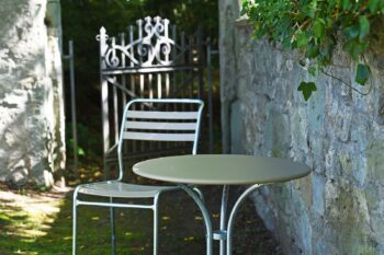 Die satinierte Oberfläche mit Polyesterpulver-Beschichtung macht die Gartenmöbel aus der Serie St. Moritz von Schaffner äusserst wetterresistent, wodurch sie sich mühelos draussen überwintern lässt.