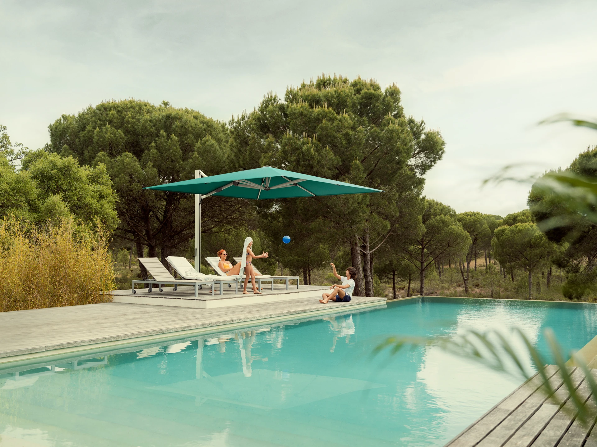 Ambiente Nova ist gegen Aufpreis als automatischer Sonnenschirm mit motorischem Antrieb erhältlich, der sich bequem per Fernbedienung steuern lässt. Wählen Sie aus über 50 Stofffarben für das Schirmdach und passen Sie das Gestell in allen RAL-Farben individuell an – für eine perfekte Abstimmung mit Ihrem Aussenbereich.