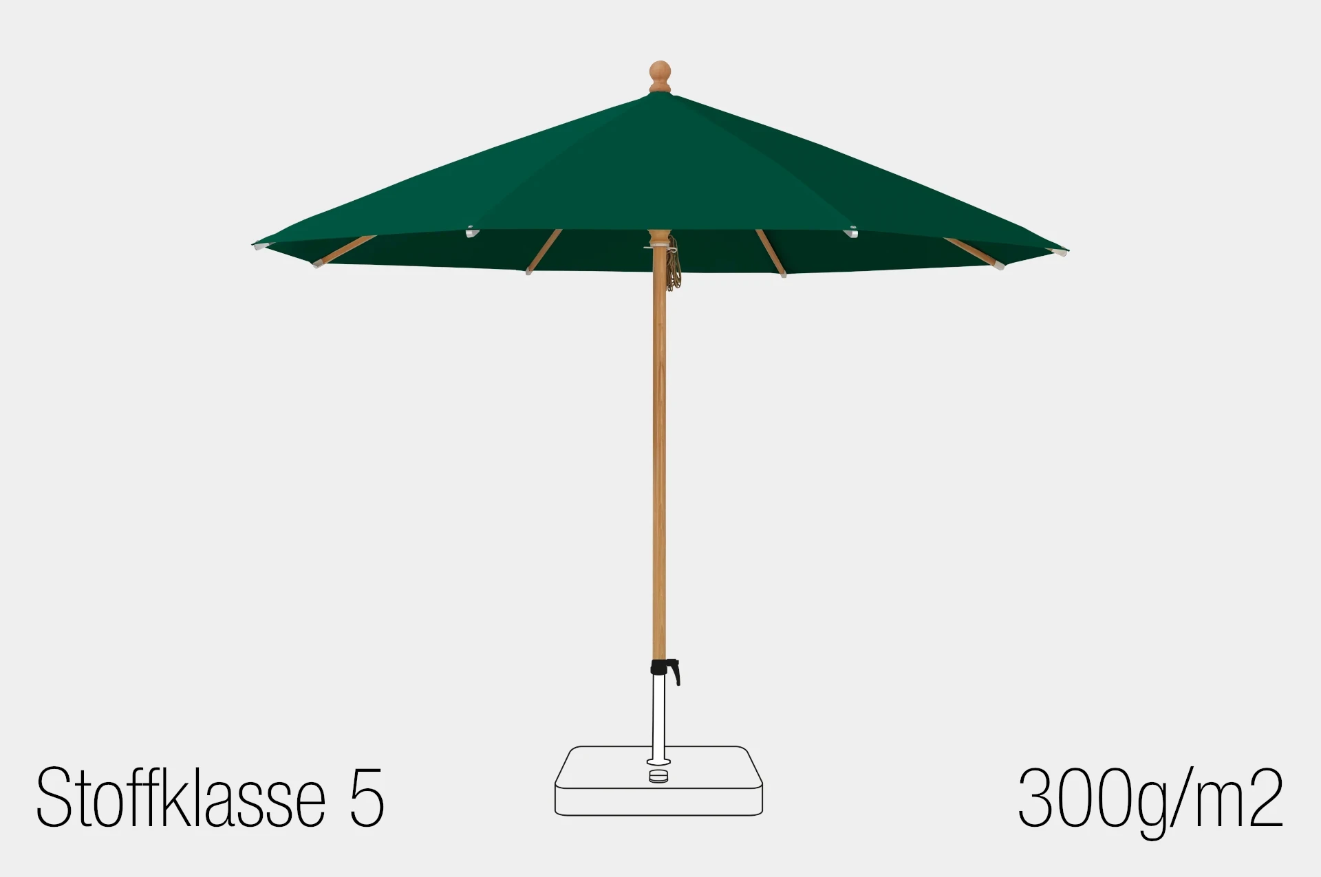 Für den Schirmbezug kann zwischen den folgenden Stoffqualitäten gewählt werden:
