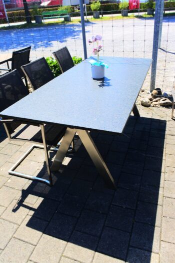 Der Esstisch SPEZIA von Zumsteg ist als Fixtisch und Ausziehtisch erhältlich. Planen Sie Ihren ganz persönlichen Lieblings-Gartentisch und wählen Sie aus 16 Grössen und über 50 Farben für die wunderschöne Tischplatte in Keramik, Dekton oder MDi. Swiss made.