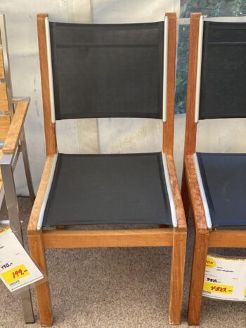 Das Aluminiumgussgestell des Gartenstuhl EXES von Royal Botania besteht aus zwei X-förmigen Rahmen, deren fliessende, organische Linien nur durch die konisch zulaufenden Armlehnen aus Teakholz unterbrochen werden, welche dem Essstuhl ein warmes Design verleihen.