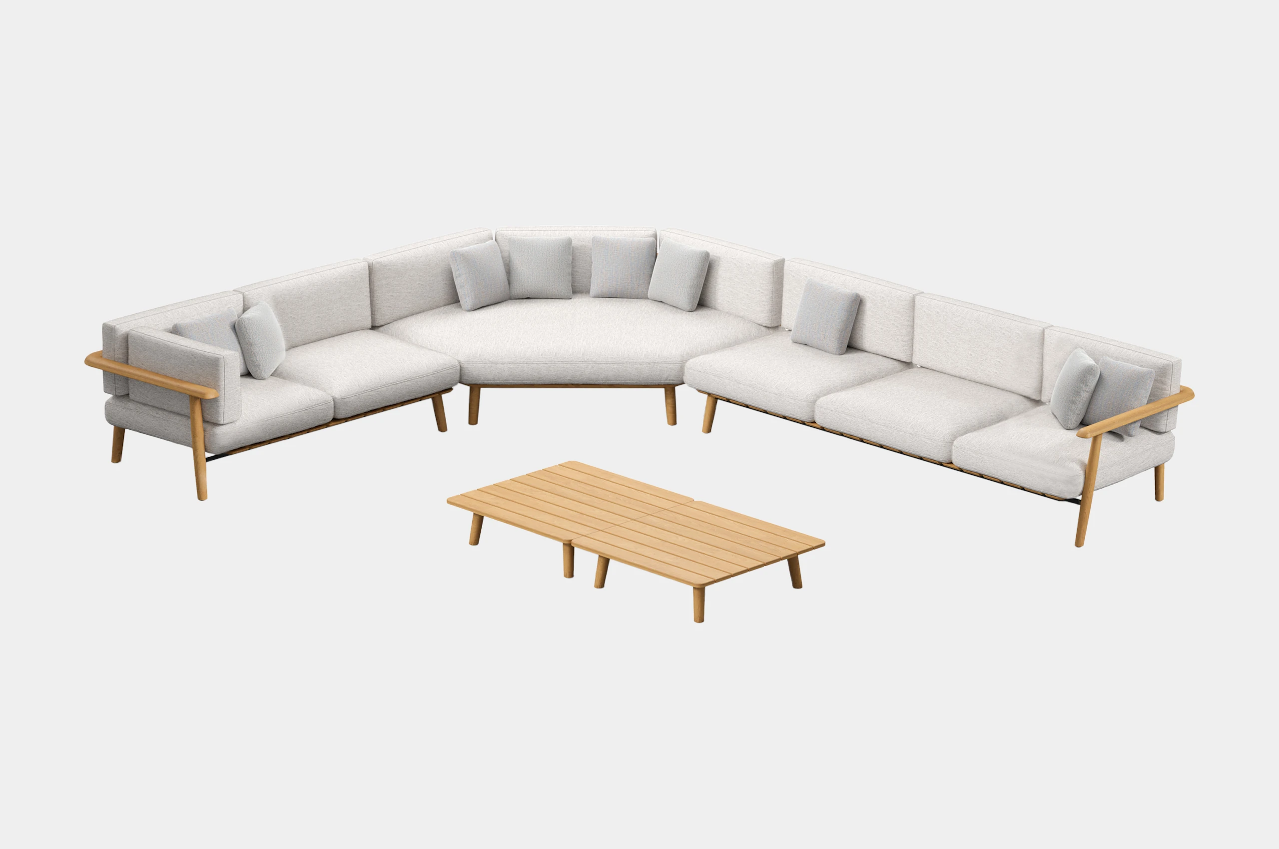 Stoff Kategorie B mit 4 preisgleichen Farben zur Auswahl, Gestell Teakholz W – auf Anfrage auch mit anderen Modulen individuell planbar und in den restlichen Farben der Royal Botania Stoffkategorien A, B und C möglich.