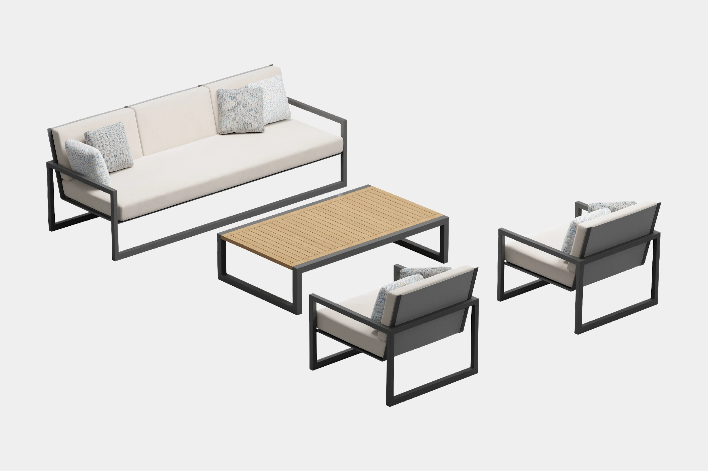 Das gebürstete Edelstahl mit Hairline-Finish, die durchdachte Ergonomie und die hochwertigen Bezüge aus Batyline® in unterschiedlichen Farben machen Ninix zu einer äusserst versatilen Outdoor-Kollektion für solche die es gerne stilvoll und modern in ihrem Garten, auf dem Balkon oder der Terrasse mögen.