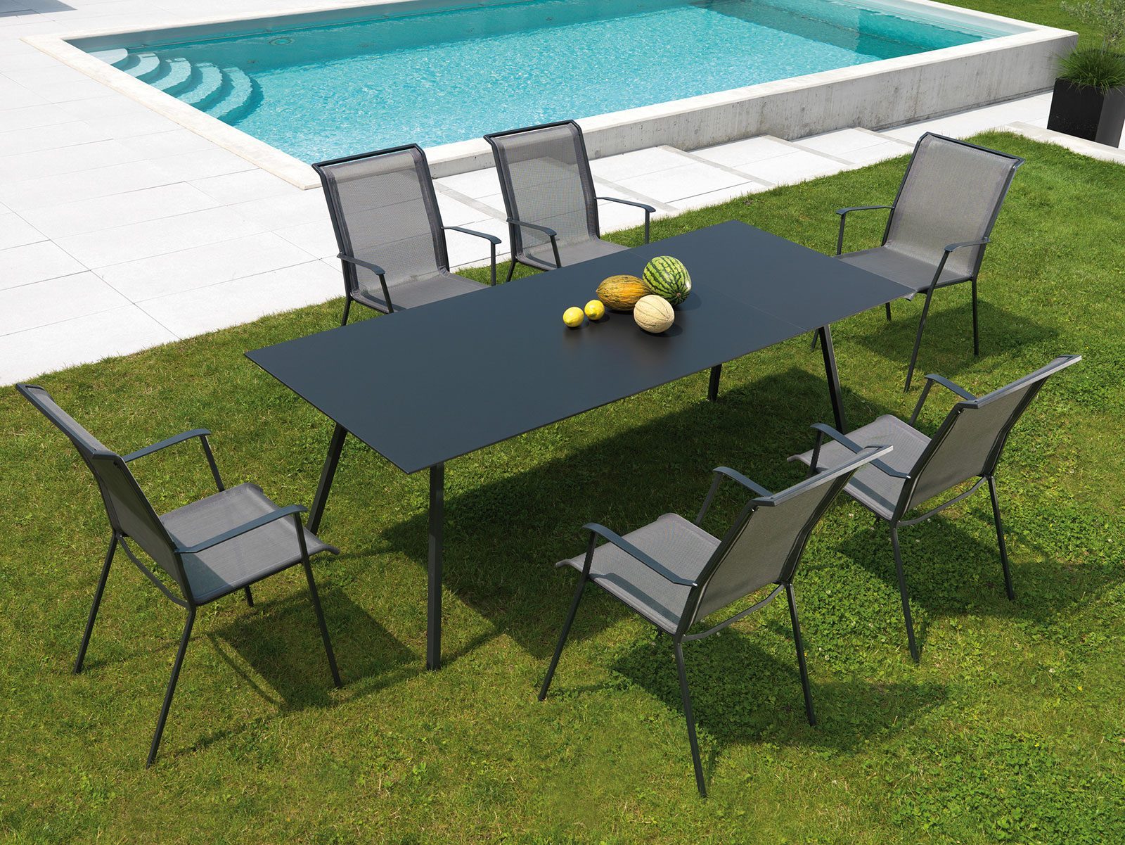 Die Chur-Kollektion von Schaffner bietet hochwertige, wetterfeste Gartenmöbel, die sich ideal für den Objektbereich und Gastronomiebetriebe eignen. Die Kollektion umfasst einen Fixtisch (160×90 cm), einen Ausziehtisch (160/220×90 cm) und einen Essstuhl.