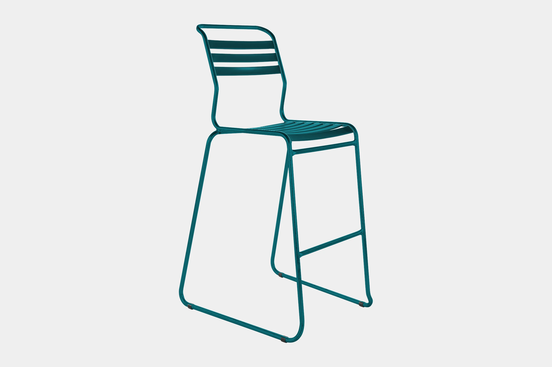 Dank hochwertiger Materialien ist der Barstuhl Säntis bestens für den intensiven Einsatz geeignet. Das Gestell ist mit einer robusten Polyesterpulver-Beschichtung versehen, die in verschiedenen Farben erhältlich ist. Alternativ kann das Gestell für eine noch höhere Witterungsbeständigkeit feuerverzinkt werden.