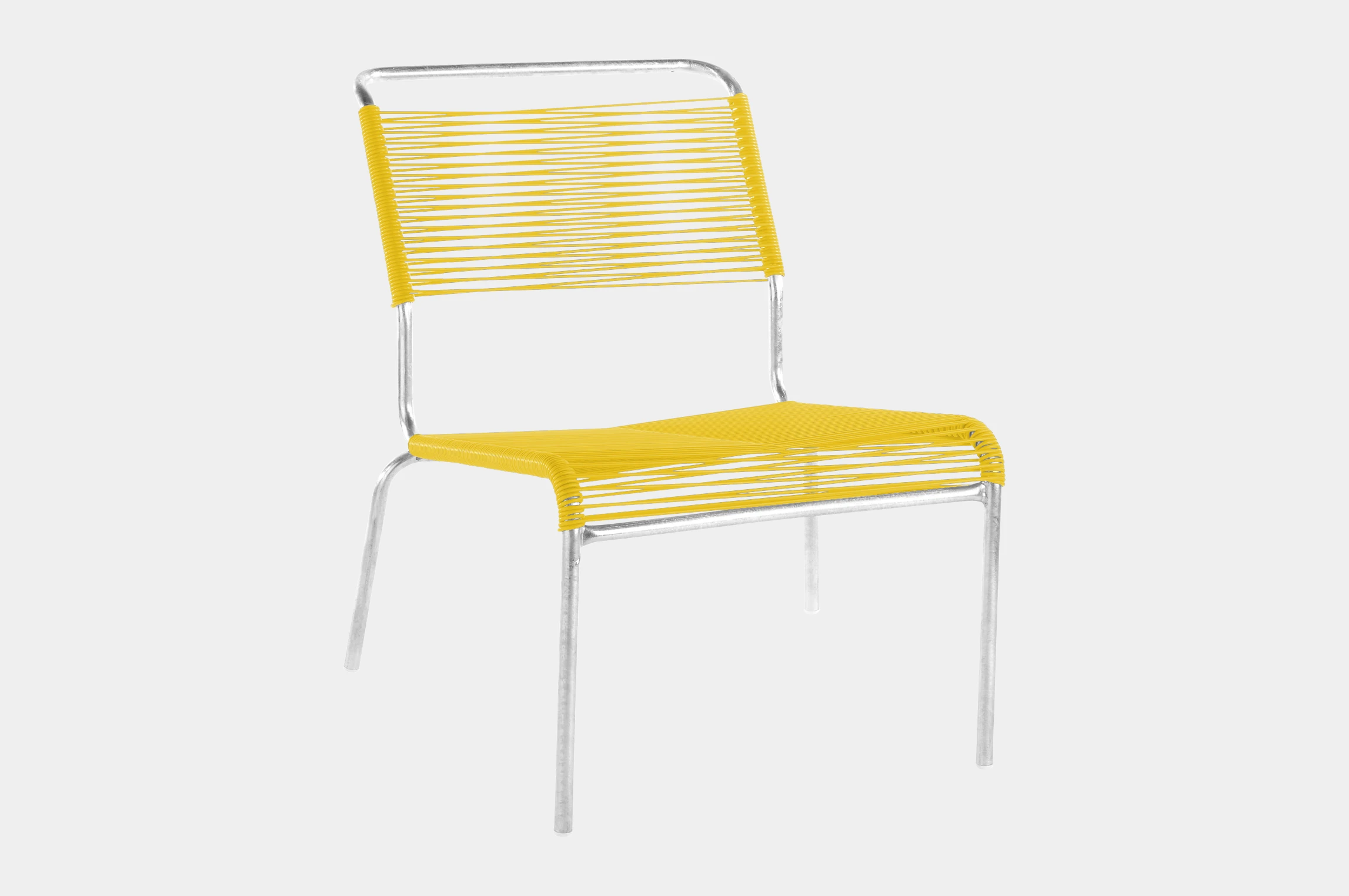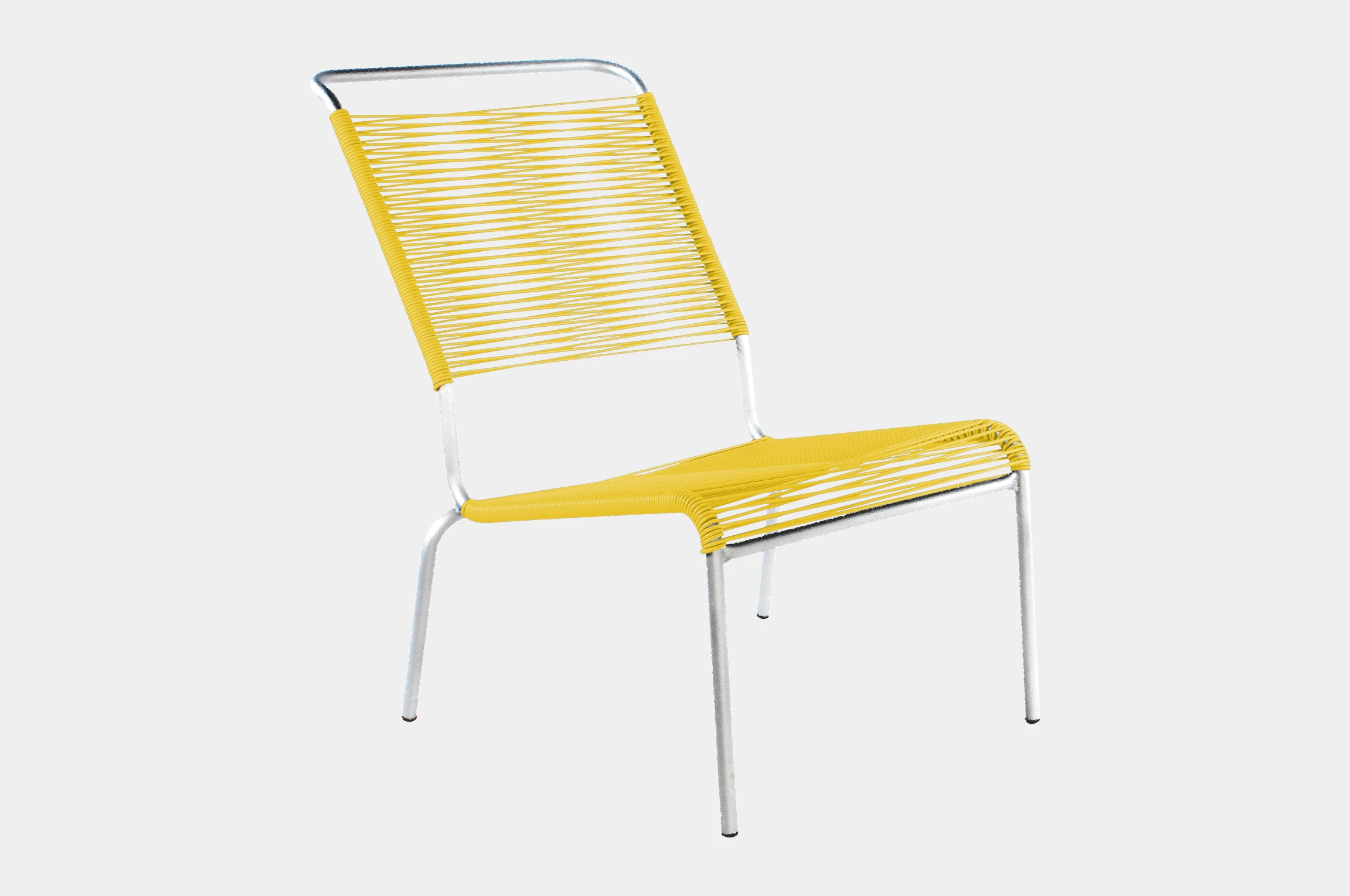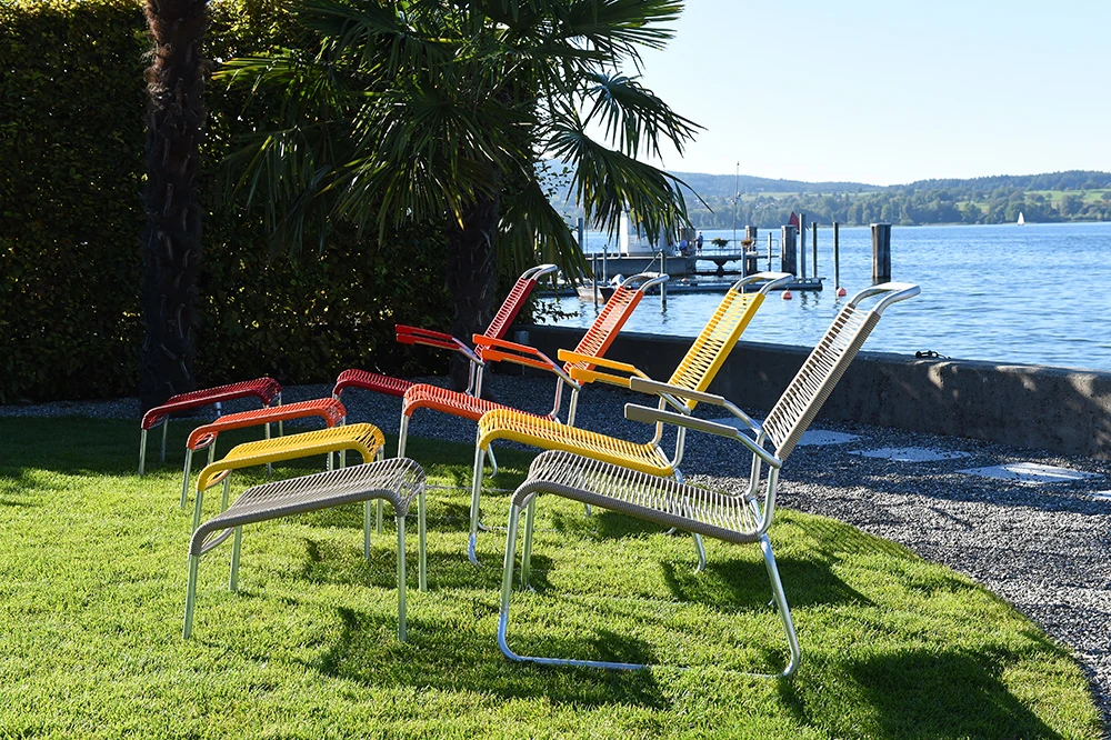 Der Lounger verfügt über ein filigranes, dennoch robustes Gestell aus korrosionsbeständigem Stahlrohr, das wahlweise feuerverzinkt oder mit einer farbigen Polyesterpulver-Beschichtung erhältlich ist. Die Sitz- und Rückenfläche ist mit stabilen, reissfesten PVC-Schnüren bespannt, die nicht nur für hohen Sitzkomfort sorgen, sondern auch ein optisches Highlight setzen. Alternativ ist der Lounger auch mit Latten erhältlich.