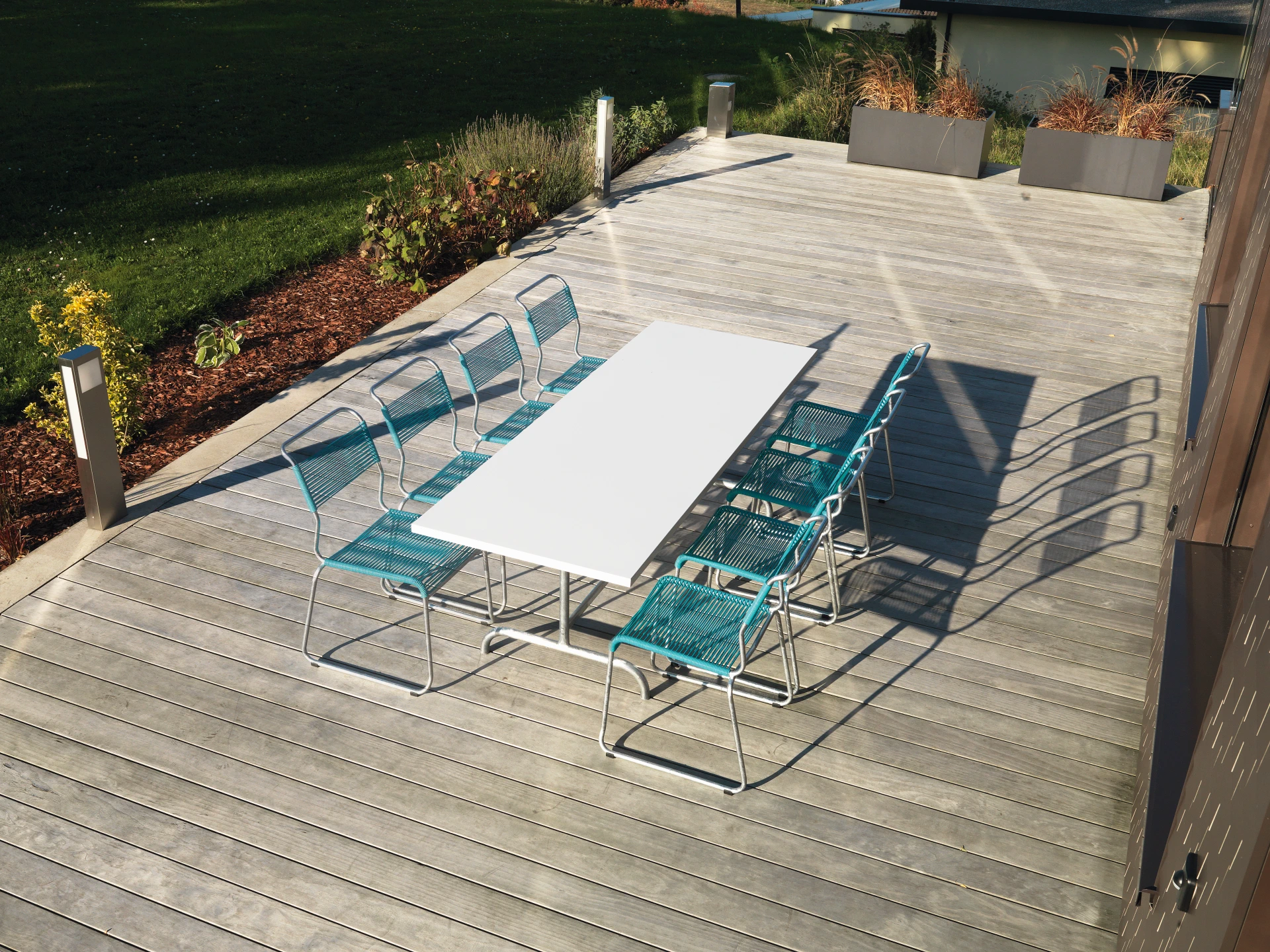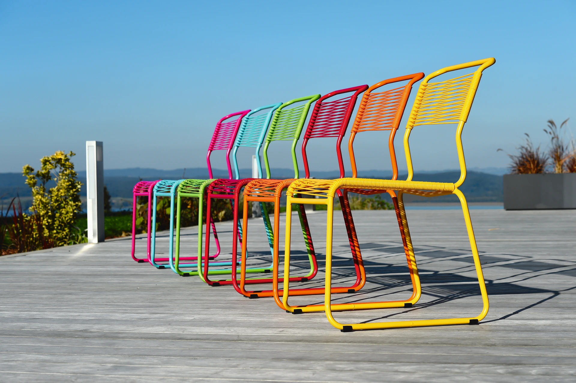 Der Säntis Spaghettistuhl von Schaffner ist ein Klassiker unter den Gartenmöbeln und überzeugt durch sein leichtes Design, kombiniert mit Robustheit und Wetterfestigkeit. Seit über 65 Jahren wird dieser hochwertige Designstuhl mit viel Sorgfalt und Liebe zum Detail in der Schweiz produziert.